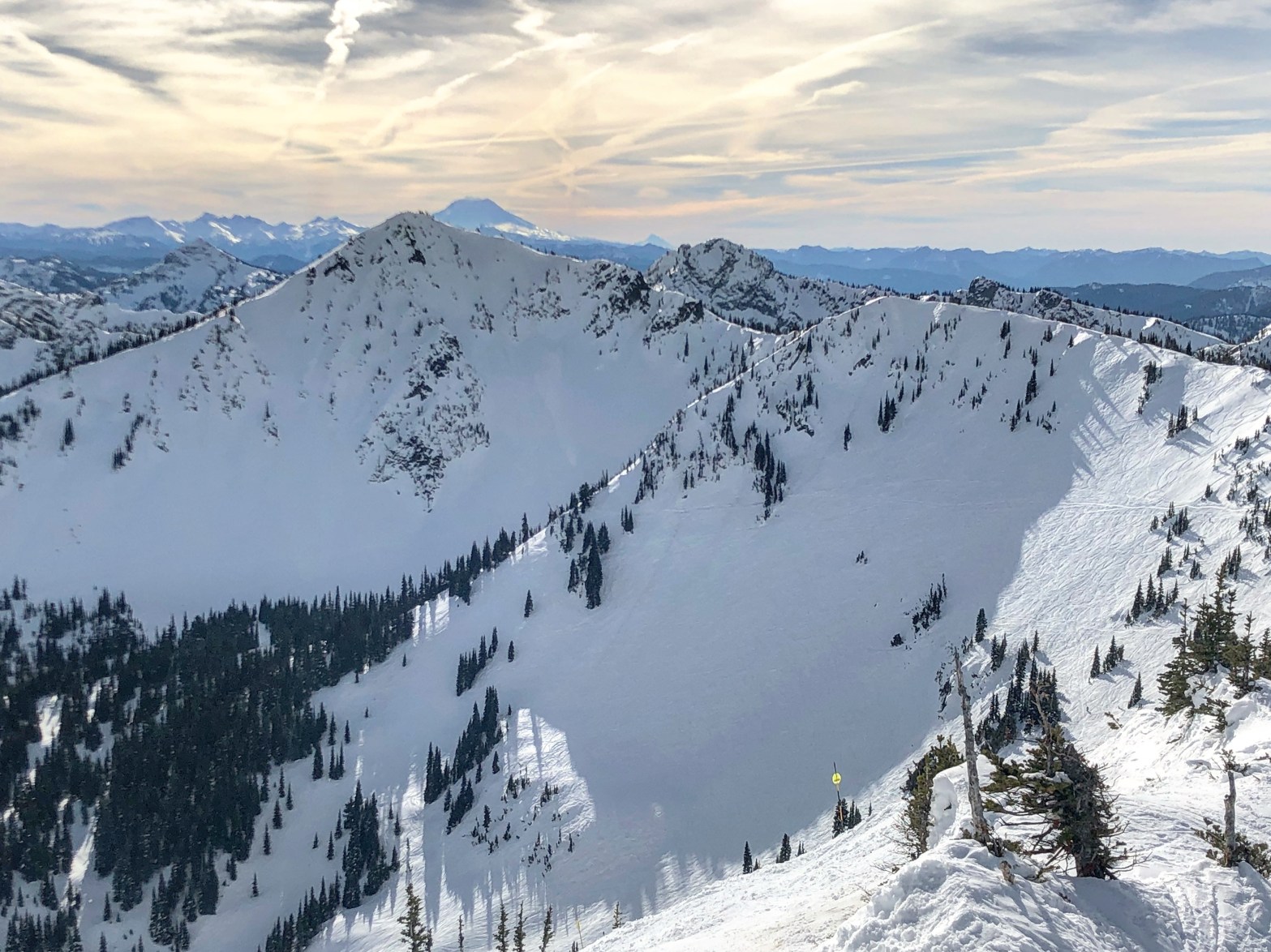 What probably was the most intense technical riding of the day was a tree line marked blue trail I found during my last run of the day 1/3 of the way down the main lines. There was a marked trail on a tree that led to a really amazing technical tree run through some really tough mogul ridden tight trees. This by far was the most technical riding I have done to date. I only did one run in those trees, but it was the hardest to finish off the day.